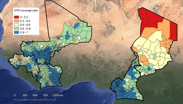 While global immunisation efforts have seen significant progress, our new high-resolution, digital population and vaccination coverage maps produced for the UNICEF-funded Reach the Unreached project indicate that nearly one million children in five West and Central Africa countries remain unreached by vaccination services. Despite increased access in many parts of the world, the so-called “last mile” challenge continues to threaten the health of vulnerable children, particularly those in remote or underserved regions.