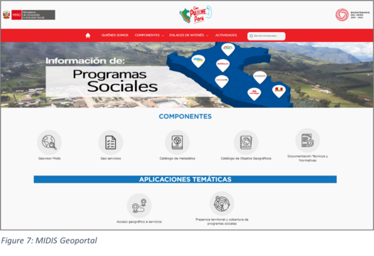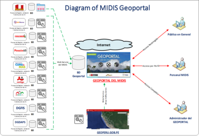 The Ministry of Development and Social Inclusion (MIDIS) has proposed the need to implement its Spatial Data Infrastructure (SDI), which allow them to access standardized and updated geographic information produced by affiliated national programs through internet-based interoperability protocols. This would help to improve the management of social interventions with territorial approach.